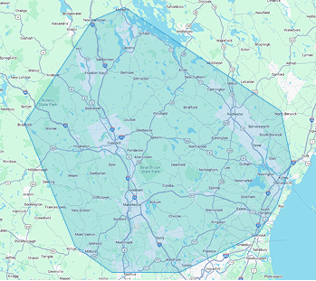 Amherst, Antrim, Auburn, Bedford, Boscawen, Bow, Bradford, Brentwood, Candia, Canterbury, Chester, Chichester, Concord, Deerfield, Derry, Dover, Dunbarton, Epping, Epsom, Francestown, Franklin, Goffstown, Greenfield, Henniker, Hill, Hollis, Hooksett, Hudson, Keene, Londonderry, Loudon, Lyndeborough, Manchester, Mason, Merrimack, Mont Vernon, Nashua, New Boston, Northfield, Nottingham, Pelham, Pembroke, Peterborough, Portsmouth, Raymond, Rochester, Salem, Sharon, Wilton, Windham, Windsor, and several other New Hampshire communities.